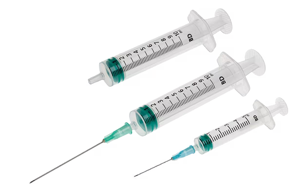 †Pro všechny velikosti stříkaček kromě 10ml stříkačky BD Plastipak™ s koncovkou Luer-Lok™ (SKU: 300912) vyráběné ve výrobním závodě BD Canaan, CT.