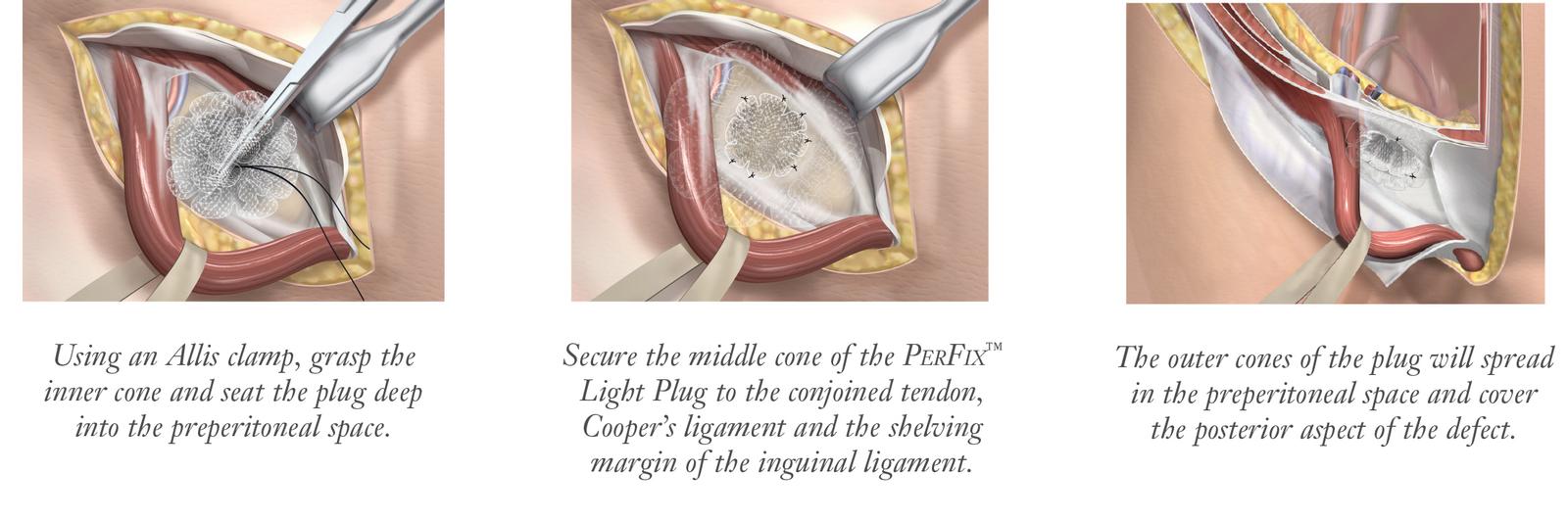Zátka PerFix™ Light je indikována pro posílení měkkých tkání, kde existuje zeslabení, při zákrocích zahrnujících nápravu defektů tříselné kýly měkkých tkání.