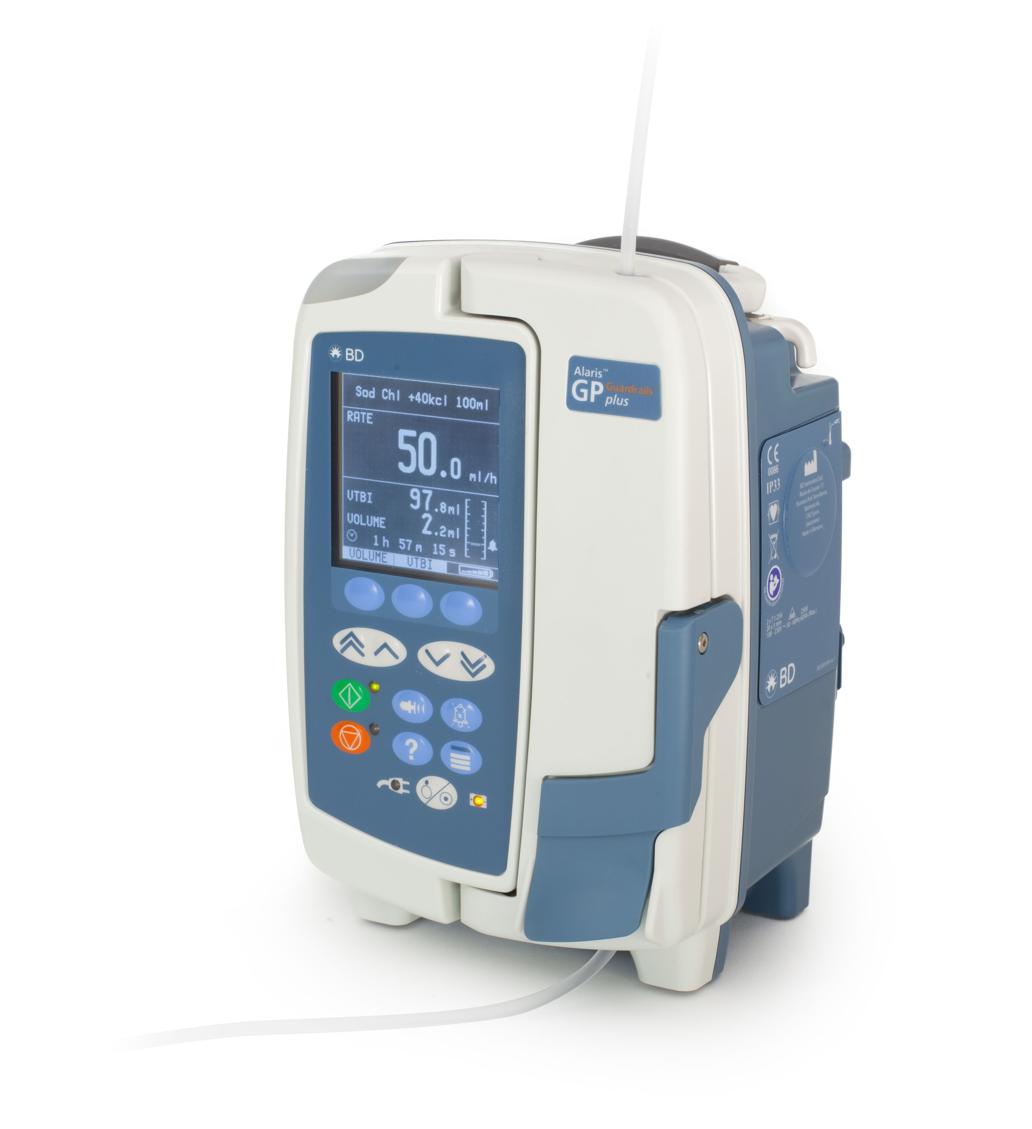 Die BD Alaris™ GP Plus Volumetrische Pumpe bietet eine Reihe von Funktionen zur Abgabe/Verabreichung von Flüssigkeit/medikamentöser Therapie, Bluttransfusionen und parenteraler Ernährung mit einem großen, übersichtlichen Display, intuitiver Bedienung und einer Vielzahl von Spezialsets. Das ergonomische Gehäuse ermöglicht einfachen Transport, Reinigung und eine Vielzahl von Befestigungsmöglichkeiten, wie z.B. die Alaris™ Gateway Workstation. Sie bietet umfassende Datenkonnektivität, die über eine offene Netzwerkarchitektur mit Patientendatenmanagementsystemen (PDMS) und Krankenhausinformationssystemen (KIS) kompatibel ist.