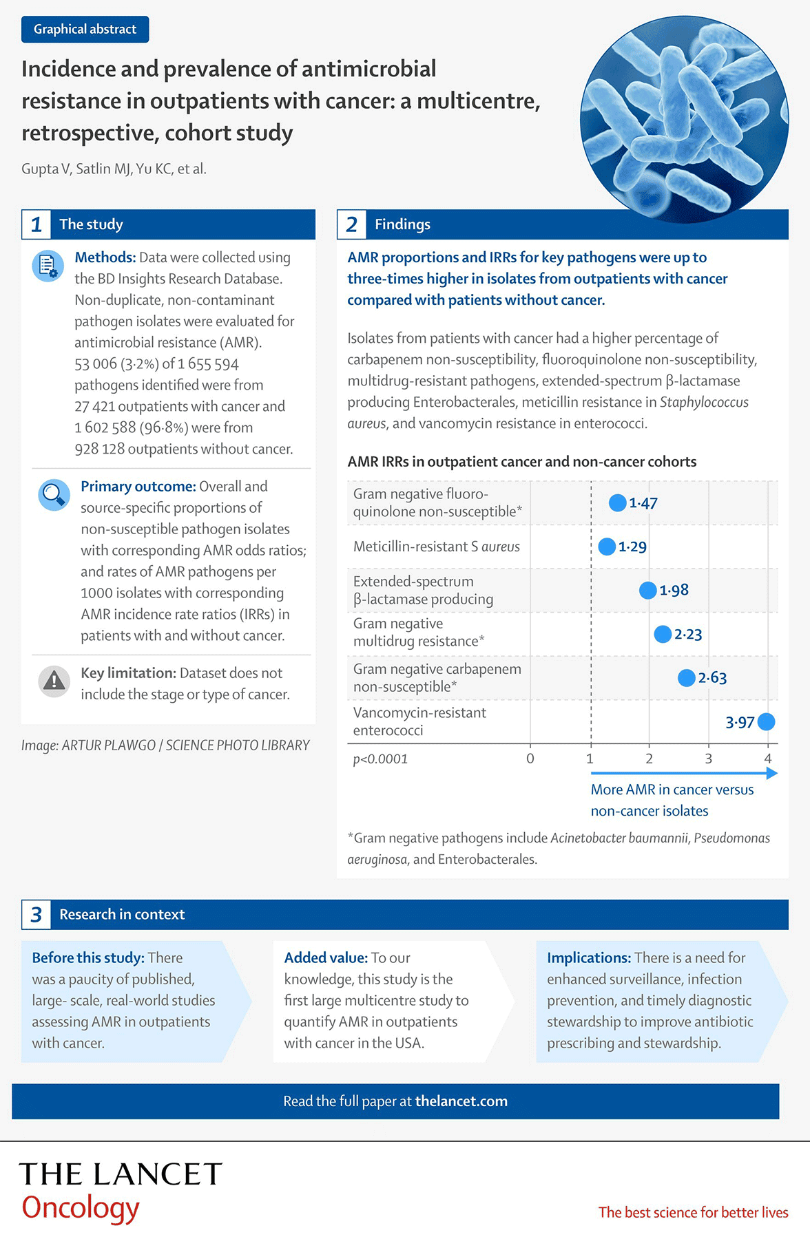 Lesen Sie mehr in The Lancet Oncology: " Incidence and prevalence of antimicrobial resistance in outpatients with cancer: a multicentre retrospective cohort study".