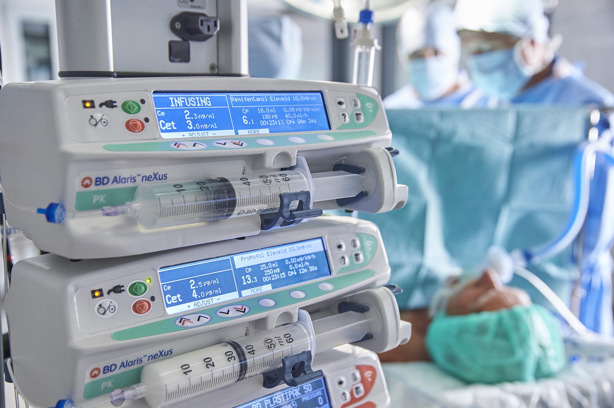 Die BD Alaris™ neXus PK Spritzenpumpe mit WLAN-Konnektivität bietet eine vollständige TCI-Lösung, die eine rechtzeitige, effektive und präzise intravenöse Anästhesie für Kinder und Erwachsene ermöglicht. Sie trägt dazu bei, sichere und reibungslose Eingriffe durchzuführen und den Workflow der intravenösen Anästhesie zu optimieren. Das System integriert die neuesten TCI-Arzneimittelmodelle und eine zum Patent angemeldete Arzneimittelsicherheit, um das Potenzial für Programmierfehler zu minimieren.