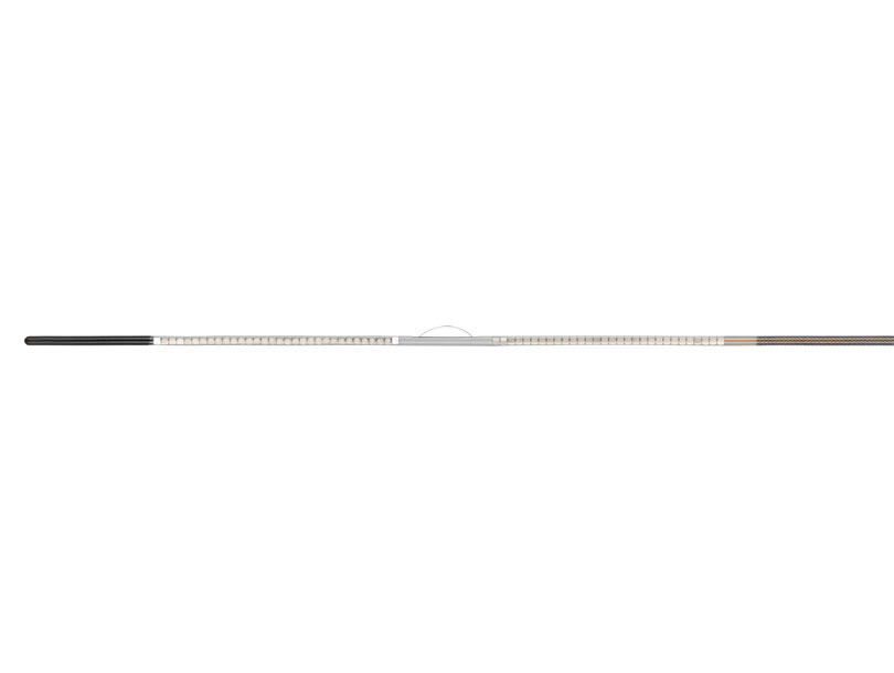 The WavelinQ™ EndoAVF System venous catheter is a flexible 4F magnetic catheter that contains a radiofrequency (RF) electrode for the delivery of RF energy, a yellow valve crosser on the distal end, and a cable and plug. The WavelinQ™ venous catheter connects via an Electrosurgical Pencil to an ESU for delivery of radiofrequency energy with standard grounding pads. RF energy can then be delivered to create a connection between the artery and vein.
