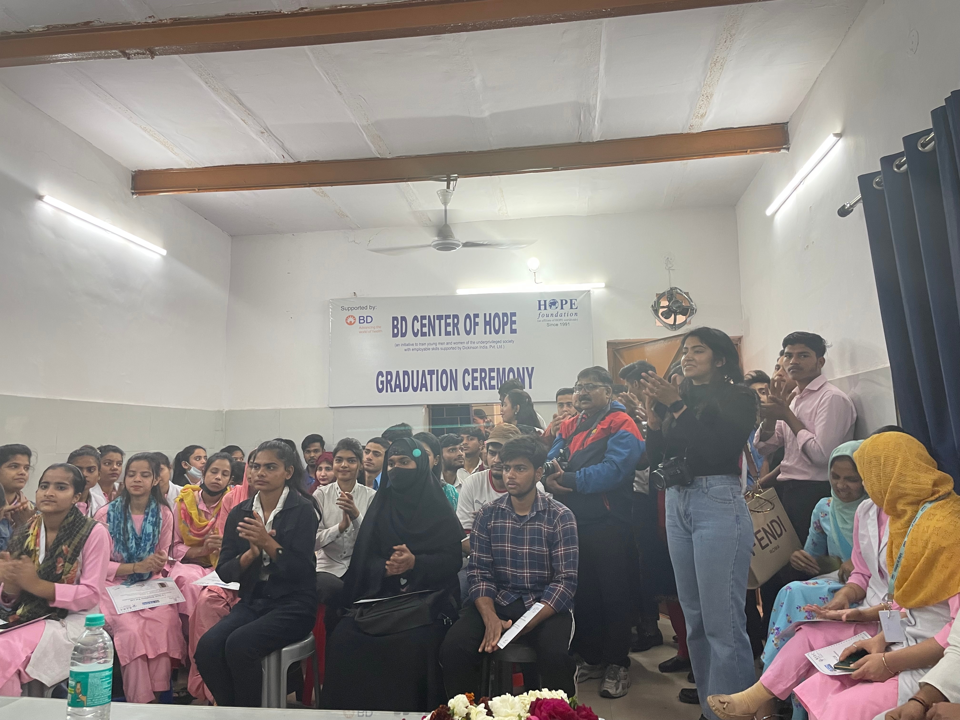 Today, 50 students from the 17th batch of the BD Village of HOPE, East Delhi were handed over course completion certificates. The students were imparted Nursing Assistant and Tally operator training over a period of 3 months by the faculty from the project’s implementing partner HOPE Foundation. The Nursing Assistant students also underwent 6 months of on-the-job training. They were evaluated by a third-party organization ID Tech Foundation, a partner with National Skills Development Corporation (NSDC), and issued a certificate of course completion.