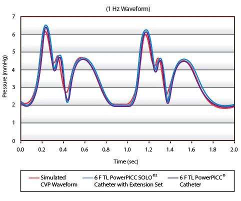 Simulated CVP Waveform vs. 6F TL PowerPICC® Catheter and 6F TL PowerPICC SOLO®2 Catheter with Extension Set1