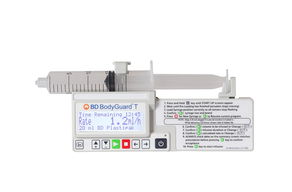 The BD BodyGuard™ infusion pump is a small, lightweight ambulatory infusion pump which offers flexibility and reliability. Effortless transition between hospital and home care requirements is the core of the BD BodyGuard™ infusion pump.