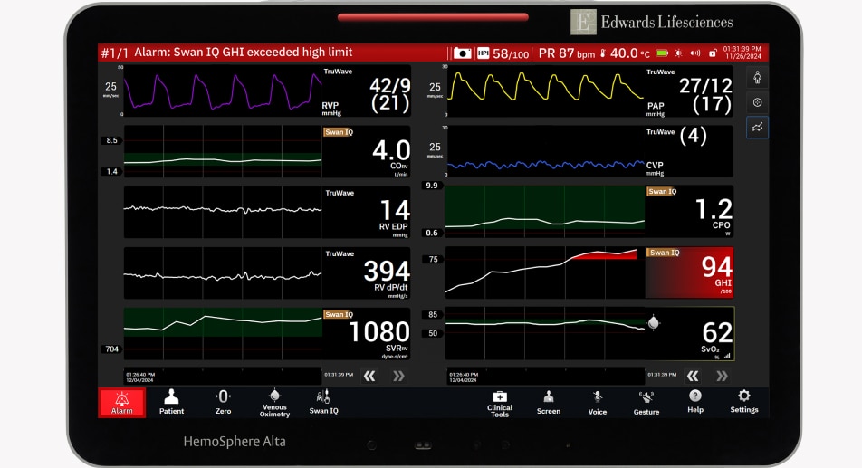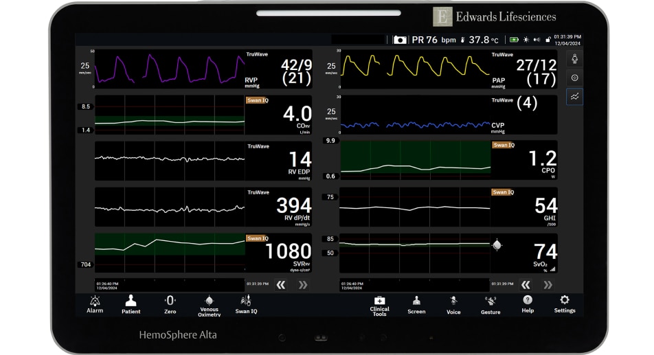 When used with HemoSphere Alta™ Monitor, Swan-Ganz IQ™ Catheter enables continuous monitoring that provides a comprehensive picture of your patient's right heart function—along with exclusive access to innovative parameters.