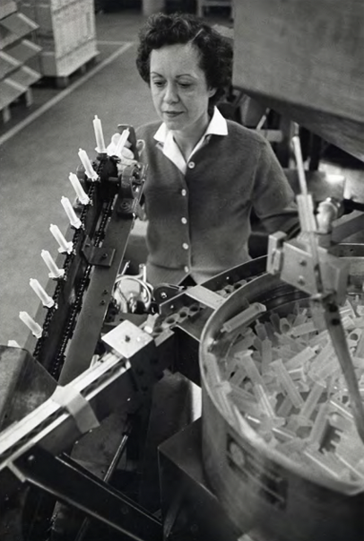 1954 Production of the first disposable syringes to be used in the Salk Polio vaccine trial takes place.