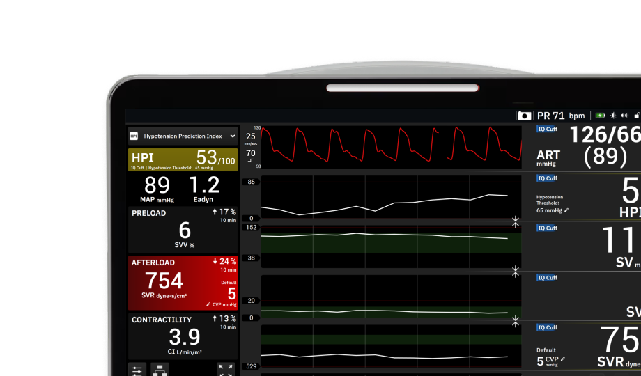 Acumen IQ™ Plus Cuff unlocks Acumen Hypotension Prediction Index™ (HPI™) Software. Acumen HPI™ Software provides AI-guided, predictive decision support to help you drill down to the potential root cause of hemodynamic instability and intervene sooner.