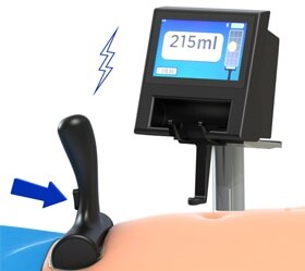 The BBS Revolution™ device projects ultrasound energy through the lower abdomen of the patient to obtain an image of the bladder, which is used to calculate bladder volume non-invasively. Users should consult with a healthcare professional for the interpretation of the results.