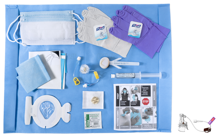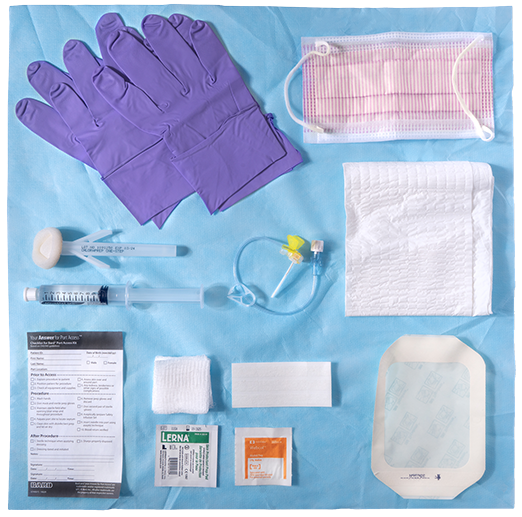 A procedural checklist is included in every kit to facilitate sterile technique, guidance for the clinician through the procedural steps and tracking of port access procedure.