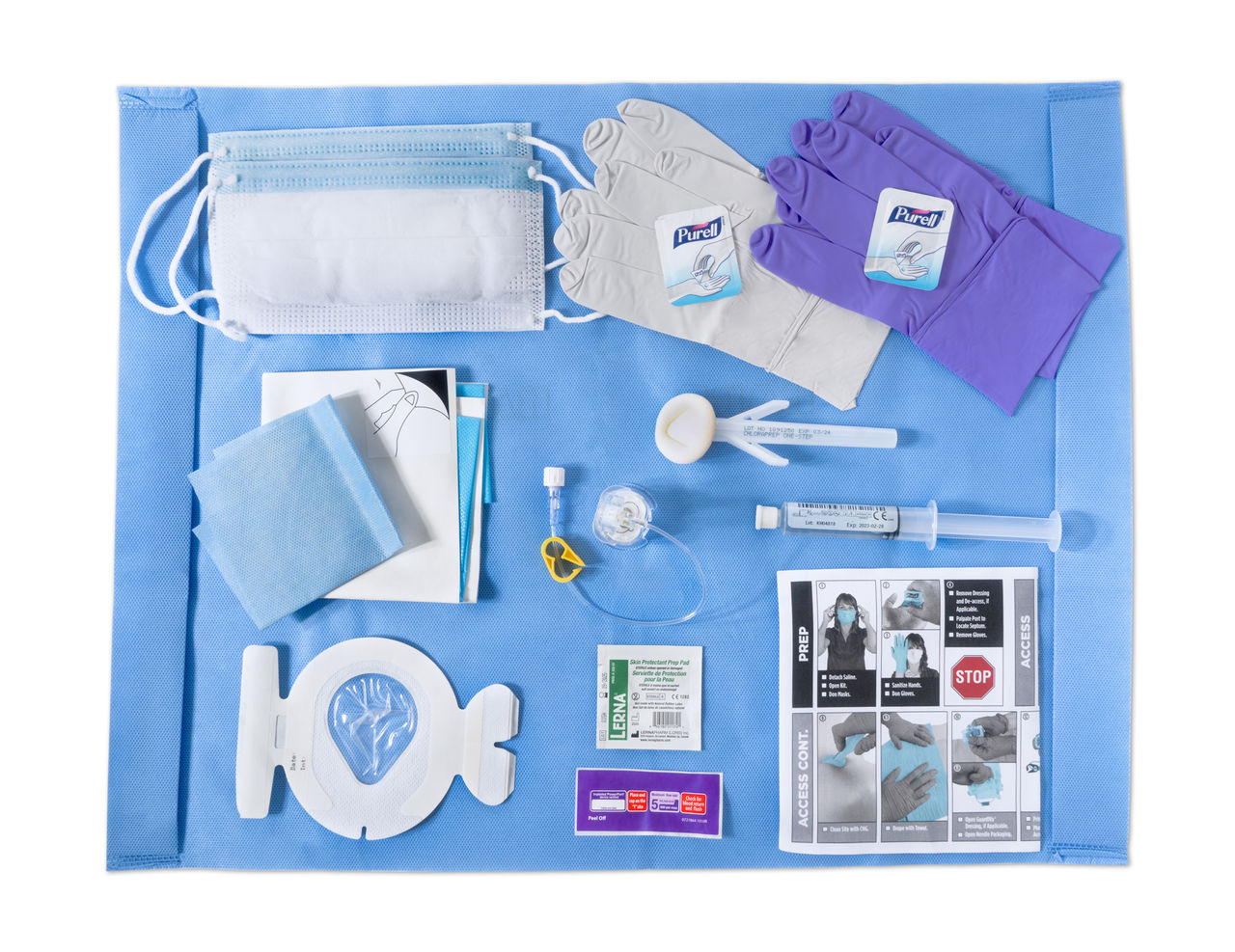An all-in-one convenient solution with components organized to promote standardized, sterile “best practices” for port access-related procedures.