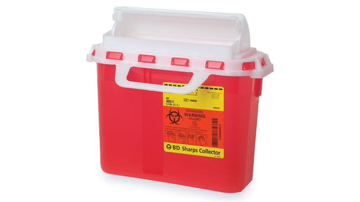 BD® Large and Extra Large Sharps Collectors are standard red infectious waste sharps collectors and come in a variety of lid designs and sizes.