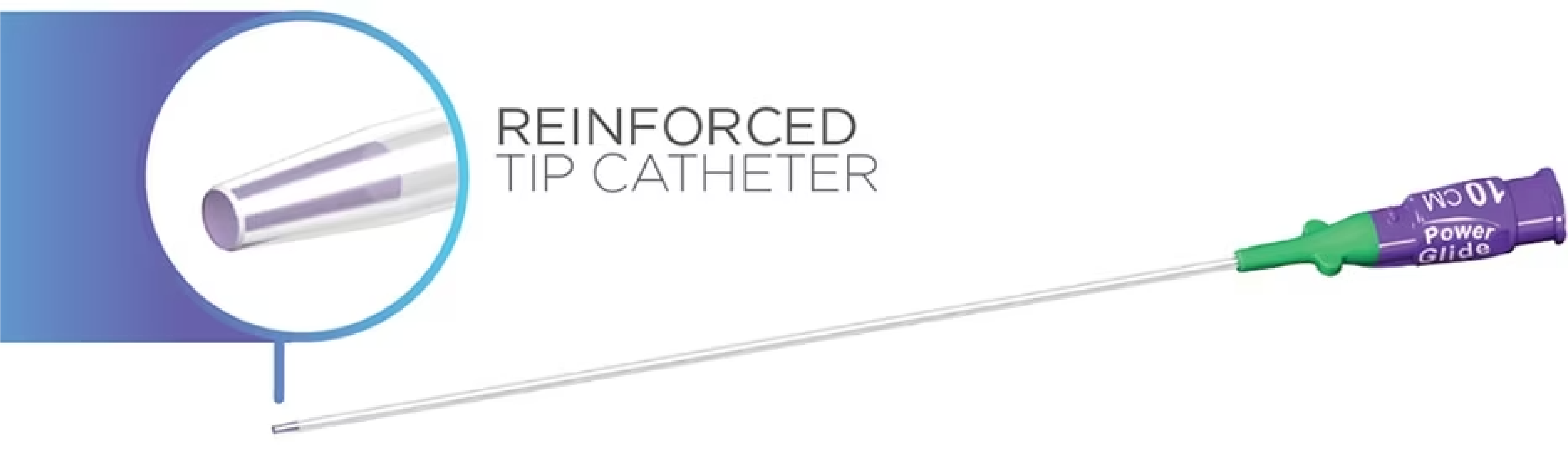 PowerGlide Pro™ Midline Catheters are built with Cue™ Needle Tracking Technology, providing the ability to use needle tracking when paired with compatible BD ultrasound systems*. The technology provides the path, intersection point and real-time depth of the needle throughout the insertion procedure, helping you to place catheters confidently and efficiently.**