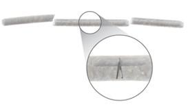 The proximal and distal pads are designed to keep the center pad, containing the wireform with interwoven polyvinyl alcohol (PVA) polymer, in place.