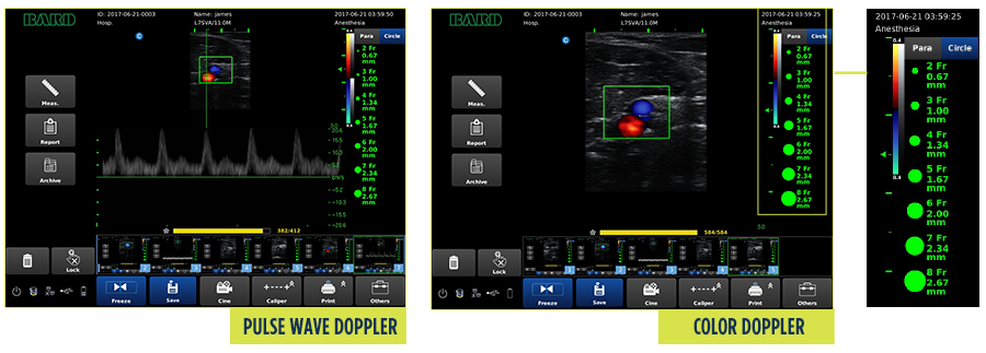 Compare vessel to on-screen catheter icons to help assess the catheter-to-vein ratio.