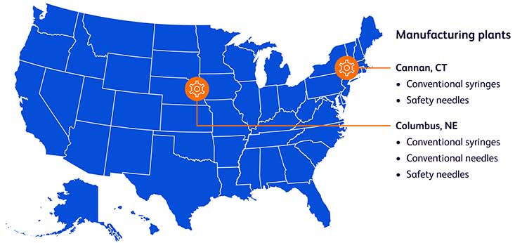 With manufacturing facilities strategically located throughout the country, BD is optimally positioned to support our U.S. healthcare partners—providing the quality, performance and reliable supply to support patient care needs.