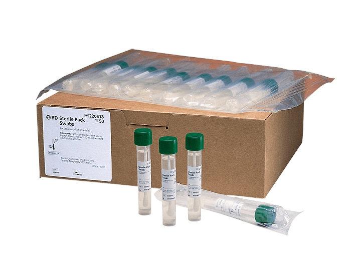BD sterile pack swabs are ready-to-use sterile swabs in a pre-filled tube of rinse solution for surface and equipment sampling.