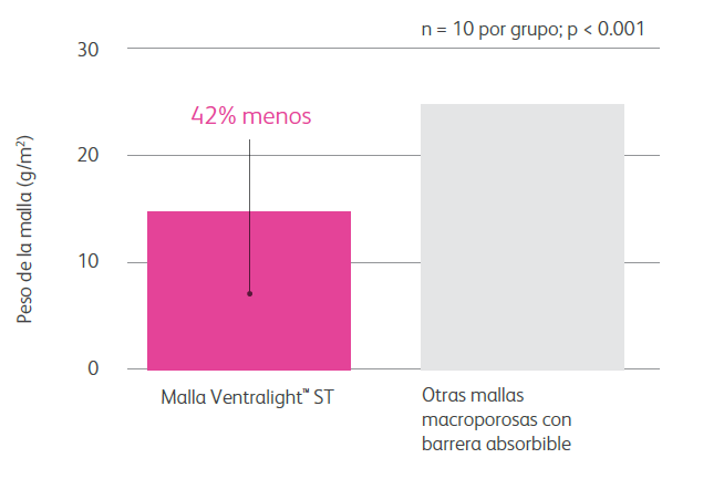 ** Basado en un estudio preclínico de una malla diseñada para la reparación de hernias compuesta de polipropileno/ePTFE.