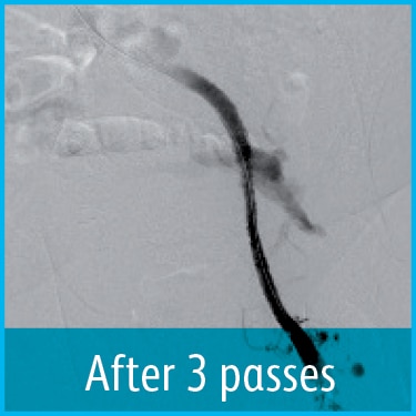 Embolia, especialmente tromboembolia distal; embolia pulmonar de todos los grados de gravedad; trombosis, especialmente trombosis recurrentes; reoclusión; lesión de la pared del vaso o daño de la válvula; disección/perforación/ruptura del vaso; perforación como resultado del desprendimiento de calcio mural de la pared del vaso; fístula arteriovenosa/pseudoaneurisma; hematoma, sangrado, hemorragia; perforación de órganos; implantes como stents/injertos de stent/injertos de bypass que se dañan, se enganchan o se desalojan; interrupción del catéter o alambre guía: restos que quedan en el cuerpo; reacciones alérgicas al material del catéter; muerte; infecciones o necrosis en el sitio de punción; reacciones alérgicas; sepsis inducida por el catéter