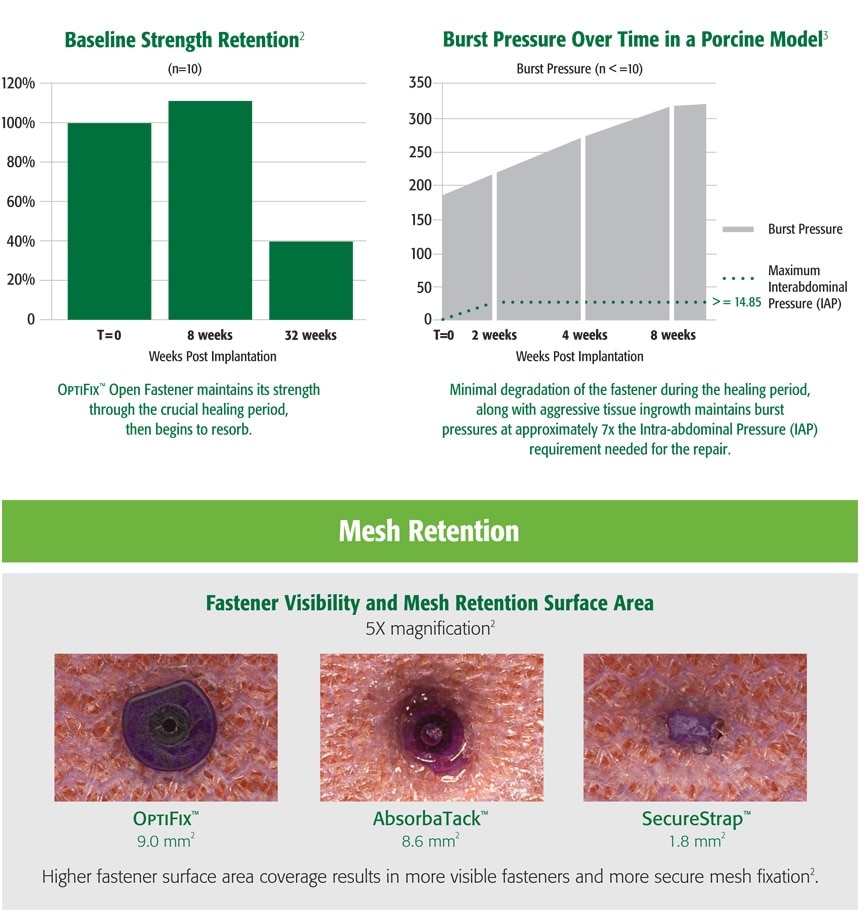 El sistema de fijación absorbible OptiFix™ Open está indicado para la fijación de mallas quirúrgicas a tejidos durante las intervenciones quirúrgicas abiertas, como la reparación de hernias.