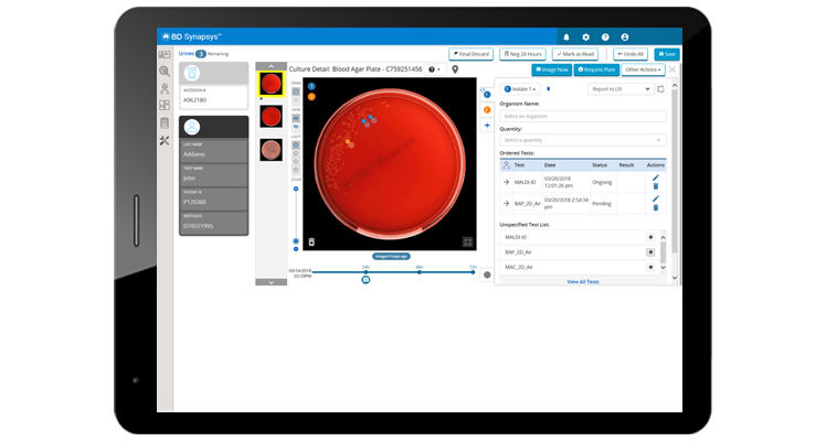 La solution informatique BD Synapsys™ contribue à aider les laboratoires face à ces difficultés. Elle offre une plateforme unique et accessible à distance via une interface web intuitive et personnalisée pour le diagnostic microbiologique. La solution informatique BD Synapsys™ permet de piloter la plupart des automates BD et d’intégrer les flux de travail. Elle permet aussi de générer des rapports et tableaux de bord pour optimiser les flux de travail et faciliter la prise de décision.