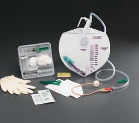 Ce plateau comprend un cathéter en latex avec un revêtement d’hydrogel anti-infectieux et des composants pour la cathétérisation. Le cathéter est préconnecté à une poche de drainage.