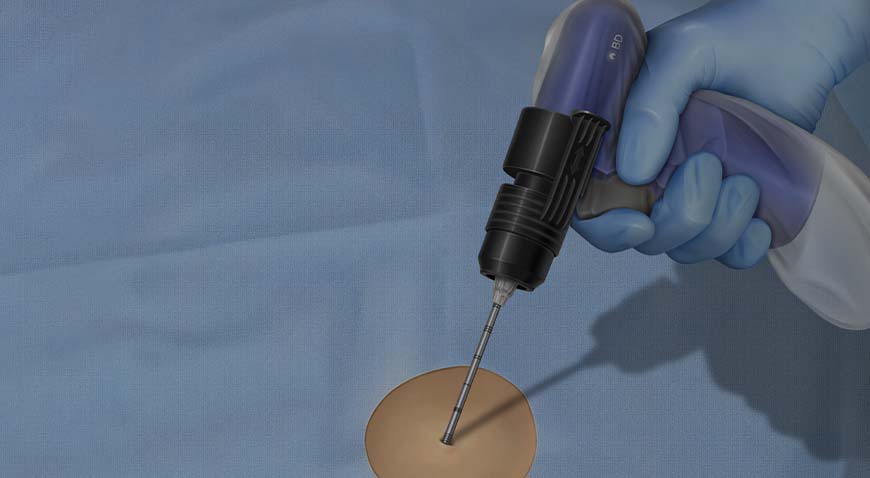 Grâce à la conception du pilote à vitesse variable du système de biopsie osseuse motorisé BD Trek™, le contrôle est à portée de main, et ce, de trois manières principales :