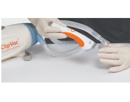 Le système d’aspiration de poils ClipVac™ est pratique; il se connecte à notre tondeuse chirurgicale pour offrir une solution de tonte et d’aspiration complète avant une intervention, ce qui évite de devoir utiliser des bandes ou des gants pour le nettoyage.