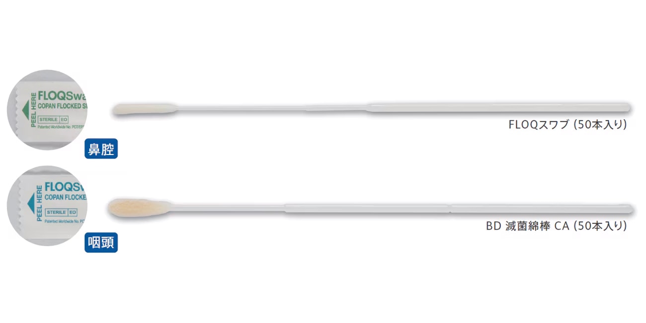 柔軟性のある軸の先端部に繊維を取り付けた植毛タイプで、主に鼻腔等の比較的狭い部位からの検体採取に適しています。