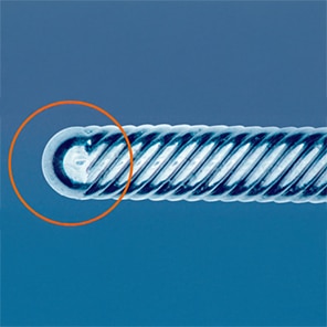 柔軟性とキンク抵抗力を兼ね備え、ガイドワイヤー切断リスクを軽減するために、斜め巻きデザインを採用しています。