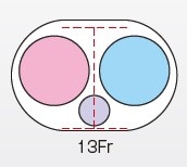 13Frサイズは、動脈側・静脈側・第3ルーメンの全てのルーメンとも、ラウンド型(円型)に内腔を確保しています。
