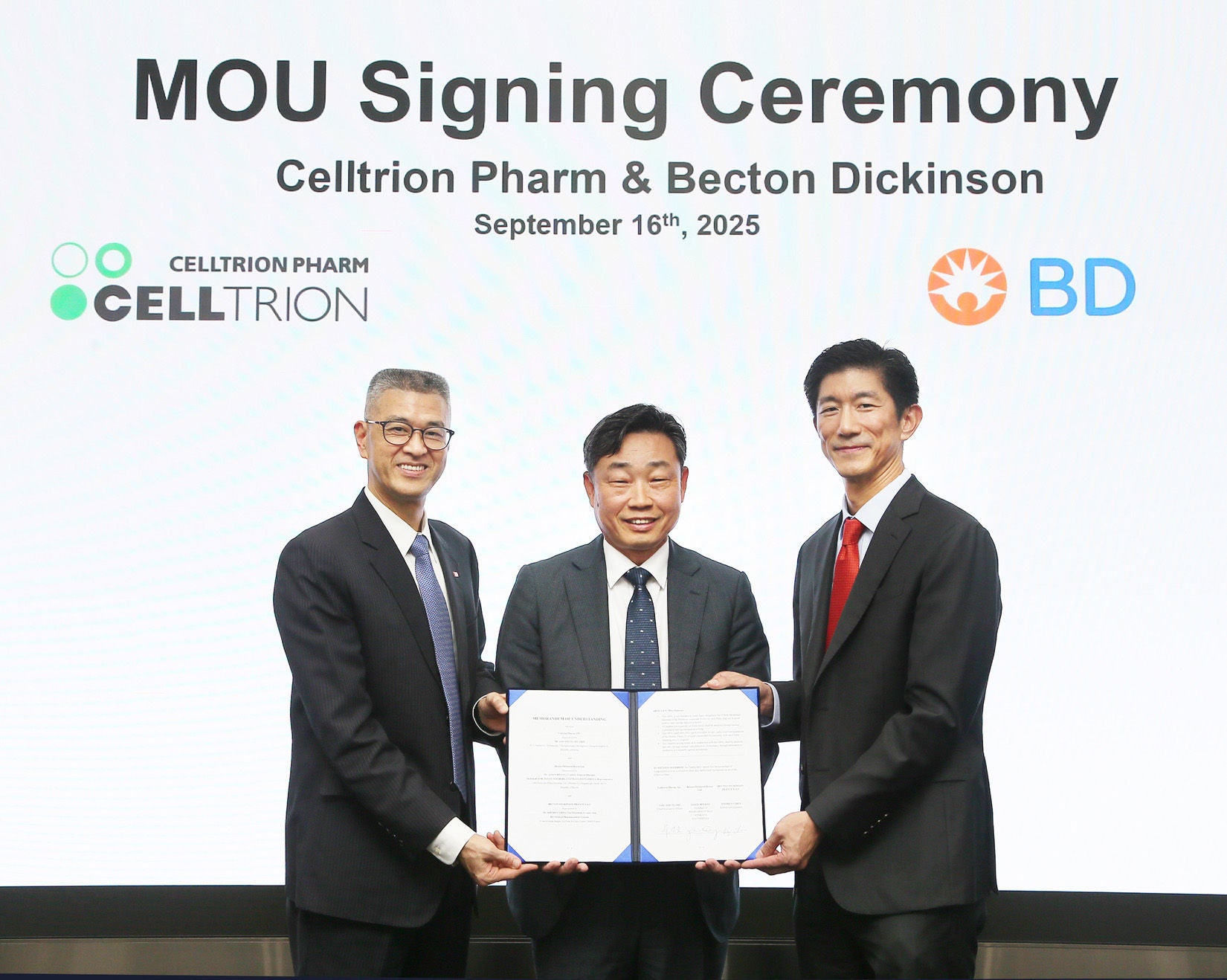 다국적 의료기기 및 장비 제조 기업 BD의 한국법인인 BD코리아(Becton, Dickinson and Company, 벡톤디킨슨코리아)는 BD글로벌, 셀트리온제약(대표 유영호)과 함께 지난 16일 인천 송도 셀트리온제약 연구소에서 프리필드 시린지 위탁생산(CMO) 협력을 위한 3자 전략적 업무 협약(MOU)을 체결했다고 오늘 밝혔다. 이번 협약식에는 BD 아시아 제프리 첸 총괄 부사장, BD코리아 제이슨 황 사장, 셀트리온제약 유영호 대표가 참석했다.