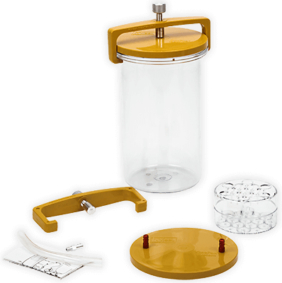 De pot is ontworpen voor één stapel van maximaal 12 stuks 90 mm x 15 mm BD BBL™ Stacker™-petrischaaltjes.